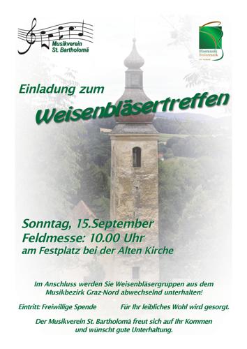 Anschließend findet bei freiem Eintritt ein freies Weisenblasen mit zahlreichen Gruppierungen aus dem Bezirk statt. Für das leibliche Wohl sorgen die Musiker*innen aus St. Bartholomä.