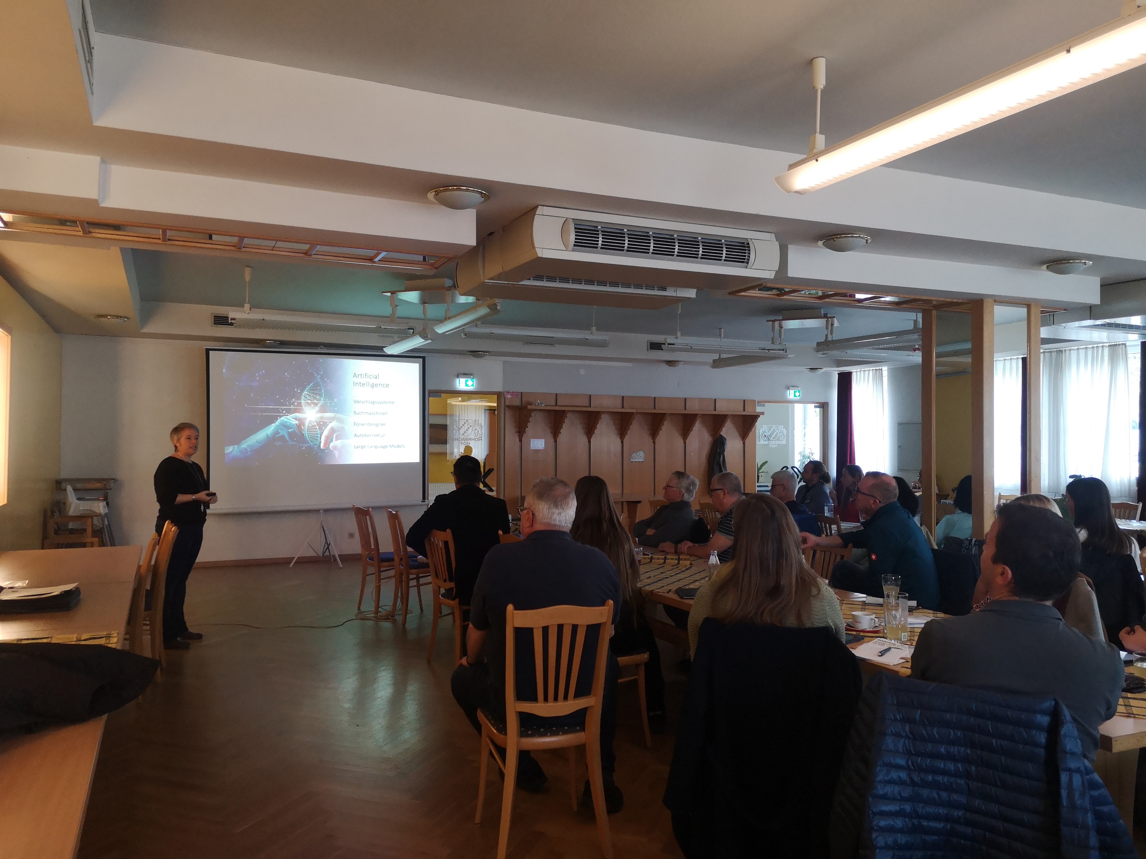 In diesem versuchte Mag. Mag. Dr.phil. Elke Höfler den neugierigen Zuhörern das Themengebiet der „Künstliche Intelligenz“ etwas näher zu bringen. So komplex, vielseitig und schnelllebig dieses Gebiet auch ist, so spannend und auch diskussionsreich war dieser Beitrag.