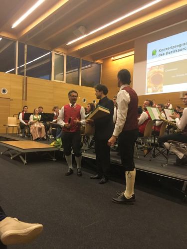In dem bis auf den letzten Platz gefüllten Saal konnte Bezirksobmann Herbert Ploder an diesem Konzertnachmittag unter anderem die LAbg. Peter Tschernko, Bgm. Franz Hierzer sowie die Ehrenmitglieder Albin Prinz und Harald Lax recht herzlich begrüßen. Dem Publikum wurde ein breites Spektrum an musikalischen Höhepunkten: von Styria, Panta Rhei, Rapunzel, Hänsel und Gretel, Of Castel and Legends, Croosbreed bis hin zu Kein schöner Land zum Besten gegeben. Als Gastdirigent für die Proben und das Konzert konnte Pietro Sano aus Friedrichshafen (Deutschland) verpflichtet werden. Pietro Sano erreichte 2015 beim internationalen Dirigentenwettbewerb con brio in Innsbruck den 2. Preis. Trotz des jugendlichen Alters ist er bereits Chefdirigent der Bläserphilharmonie Ostwestfalen-Lippe, Leiter des sinfonischen Blasorchesters der Hochschule für Musik Detmold und seit heuer Musikdirektor des Stadtorchesters Friedrichshafen.