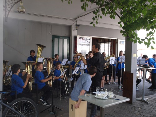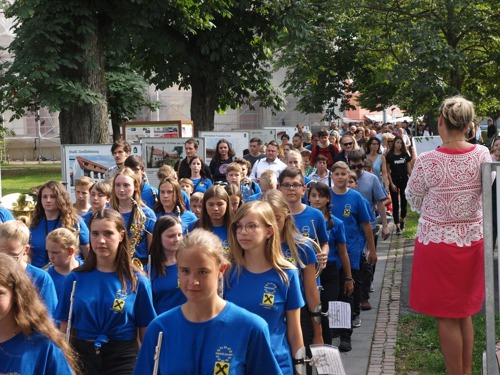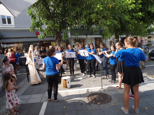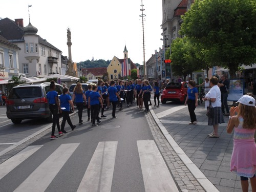 Nach deren Präsentation ging es über in einen Flashmob. Das Schlagwerk startet diesen am unteren Ende des Hauptplatz und sammelte die restlichen Teilnehmer ein und marschierte mit dem 47er Regimentsmarsch ins Kulturzentrum wo das Abschlusskonzert stattfand.