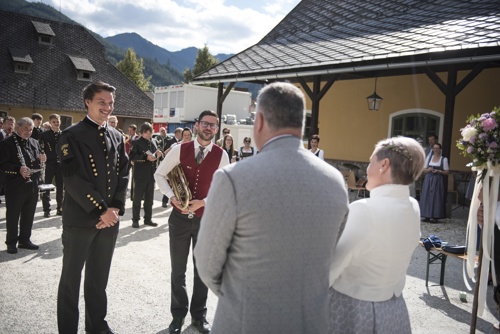 Im September wurde dieses Motto zum „Programm“ und so wurde eine Musikerehe geschlossen. Die Musikerin Kathrin Hänsler, der Werkskapelle Donawitz und der Musiker Friedrich Wagner des Musikvereins Traboch gaben sich das JA – Wort.